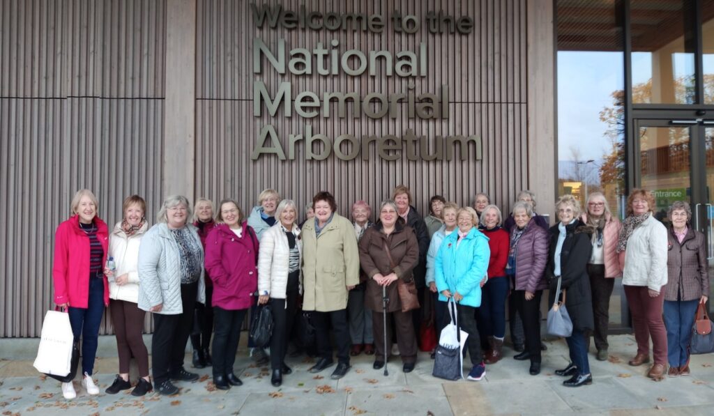 On Wednesday 2nd November some 46 members of the Coddington Women’s Institute, their husbands and friends made a trip to the National Memorial Arboretum near Stoke-on-Trent. Although the weather was a bit on the cold side, the rain held off right until the last minute and only started as we boarded the bus to come home.