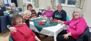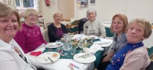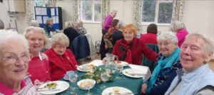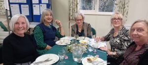 We met at the Village Hall on the 10th December for our annual Christmas Party. All members were invited and this year provided a ‘Faith’ lunch, and what a spread! How generous was everybody! The committee ensured that everyone had a variety of drinks. The room was full of chat and laughter!